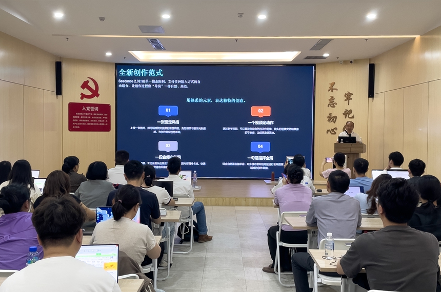 “一开始来听课,我也是抱着试试的心态,怕听不懂,白跑一趟。”黄伟杰坦言。几节课下来,他的顾虑打消了——老师手把手教学,零基础也能跟上节奏,遇到难点还会放慢速度。Seedance、剪映、龙虾(OpenClaw)……这些工具,为他打开了新世界的大门。他用AI制作的短剧小样,惊艳了一众亲友。